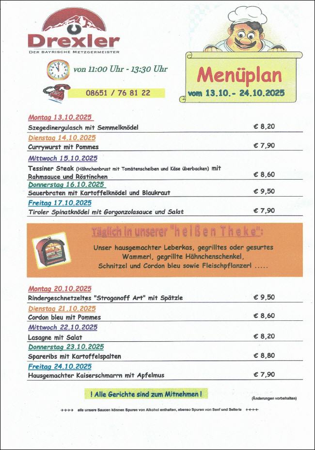Menübestellung unter: 08651 / 7681 - 22